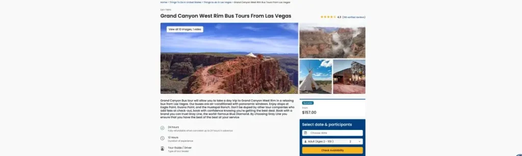| Gray Line | Grand Canyon West Rim, Skywalk | 30–50 | $90 | Budget-friendly, classic experience |
