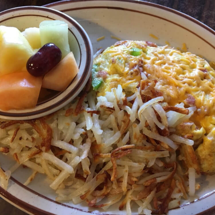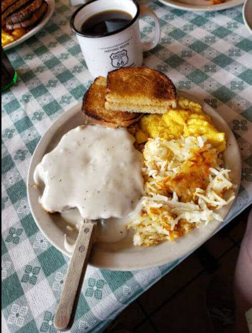 Su sencillo menú ofrece platos típicos del suroeste de Estados Unidos, como tortillas, tortitas, sándwiches, hamburguesas y platos mexicanos.