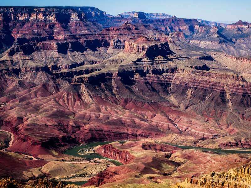 Over millions of years, the Colorado River has carved its way through the rock layers, revealing a history dating back nearly two billion years. The exposed rocks offer a rare glimpse into Earth’s ancient past.