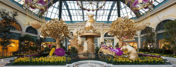 After the fountain show, if you take a step inside the Bellagio you will find yourself inside of a beautiful, massive room with glass ceilings that the Bellagio refers to as it’s “14,000-square-foot floral playground”.