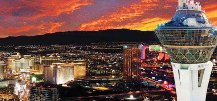 The skypod is complete with bars, thrill rides, souvenir shops, a chapel, as well as one of Vegas’ top rated restaurants “Top of the World”, whose floor rotates around the skypod as you enjoy dinner.