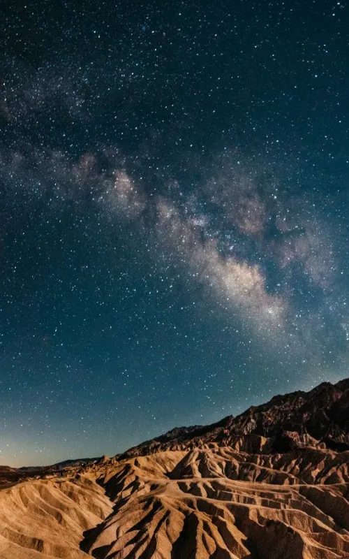 Zabriskie Point Stargazing. Arrive at Zabriskie Point to witness stargazing in Death Valley’s renowned International Dark Sky Park.