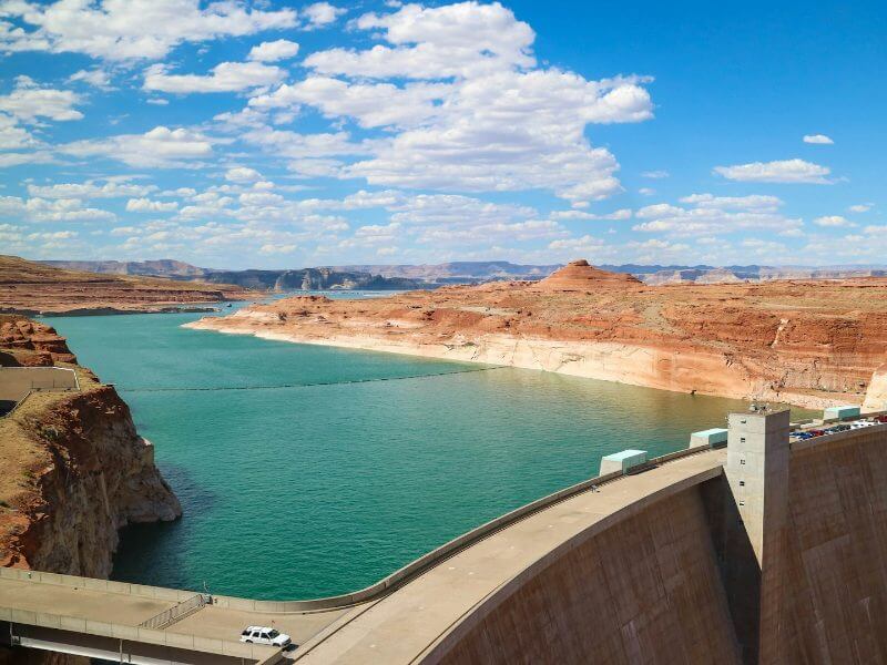 Lake Powell isn’t a natural lake; it’s actually a man-made reservoir. It’s in Glen Canyon on the Colorado River and was created by the construction of the Glen Canyon Dam.
