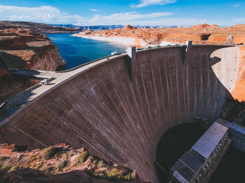 格伦峡谷大坝阻塞了科罗拉多河,形成了鲍威尔湖。您既可以从游客中心欣赏到湖泊的美景,也可以在桥上漫步,欣赏大坝、湖泊、峡谷和河流组成的旖旎风光。