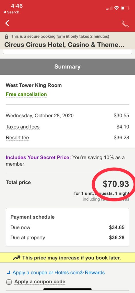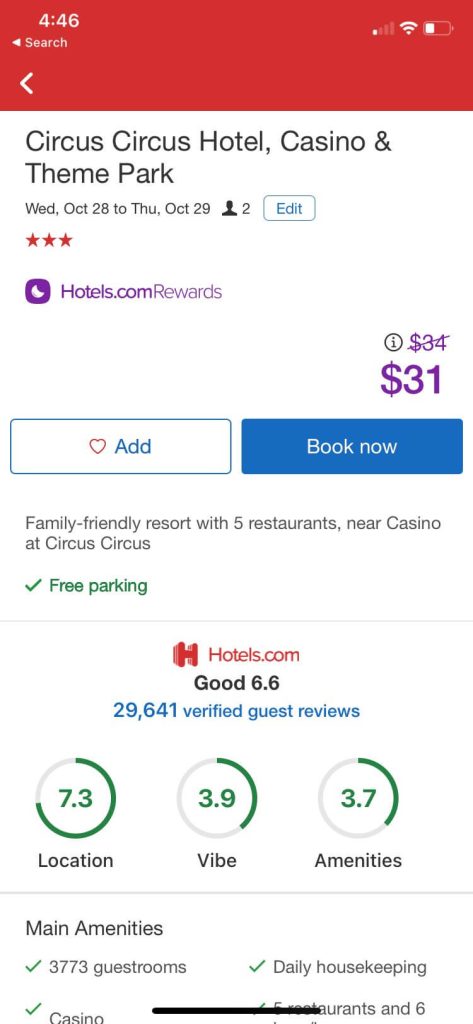 我们知道在马戏团酒店预订房间最吸引人的是价格。只有在拉斯维加斯大道上有更低的价格,人们才会接受高额的额外费用和税收、糟糕的地理位置和差评。