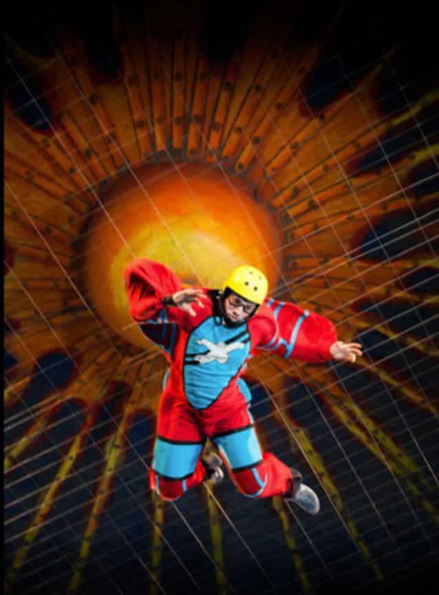 室內高空跳傘在拉斯維加斯的會議中心,在這裡無需降落傘或飛機,即可體驗高空跳傘的驚險刺激。 1,000馬力的電動機可讓您在室內高空飛翔。當螺旋槳打開時,空氣開始流動。您將在空中漂浮、飛行、自由下落,這里風速高達120 mph,非常刺激好玩。