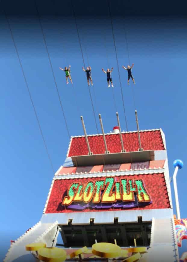 Slotzilla位於弗里蒙特街(市中心的舊拉斯維加斯)。這是一種有趣的高空飛行體驗,你會在近420米長的聲光秀LED屏幕下飛行(位於弗里蒙特街上方27米)。聲光秀表演是免費的,從黃昏到黎明都有表演。